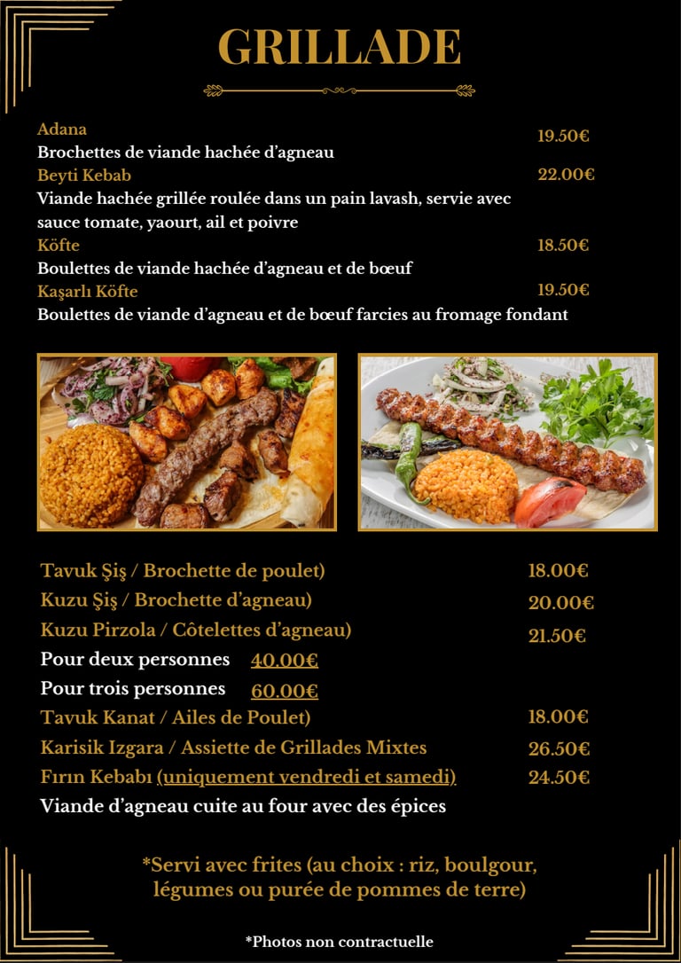 L'authenticité turque dans chaque bouchée. Découvrez nos grillades traditionnelles préparées avec passion.